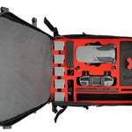 Lo zaino è stato sviluppato per contenere tutti gli accessori del DJI Mavic Air 2 così come il grande DJI Mavic Air 2 Combo Edition. L'interno dello zaino è fatto di schiuma speciale modellata di alta qualità, robusta e durevole; ideale per elementi delicati e in filigrana, così come per i componenti elettrici (nessuna schiuma pressata vulnerabile come è spesso usata nei prodotti dell'Estremo Oriente).