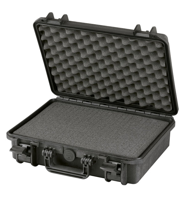 custodia impermeabile e antipolvere in nero, vuota Dimensioni interne: 380 x 270 x 115 mm Profondità coperchio+fondo: 36 + 79 mm Dimensioni esterne: 414 x 345 x 129 mm Peso:...
