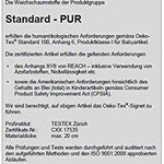 - Produzione della schiuma in Germania in considerazione delle rigide normative per l'industria della lavorazione della schiuma. La nostra schiuma è certificata secondo lo standard internazionale uniforme Oeko-Tex e quindi testata per l'innocuità per la salute e per condizioni di produzione socialmente e ambientalmente compatibili.