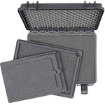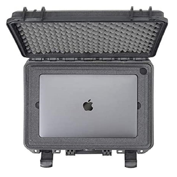 Estremamente alta qualità e professionale custodia per laptop / notebook case / gaming laptop case dalla Germania, 100% impermeabile e antipolvere secondo lo standard IP67 (mantiene la tenuta per almeno 30 minuti 1m sotto l'acqua!) Certificato. La valigia è anche chiudibile a chiave tramite 2 fori e in combinazione con le serrature opzionali disponibili.Con la schiuma raster di alta qualità, resistente e pre-perforata è possibile creare un inserto di schiuma adatto al vostro laptop / notebook e agli accessori come l'alimentatore ecc. senza alcuno strumento. Basta tagliare con le dita i cubetti di schiuma nei punti preforati. Apertura elegante grazie al funzionale sistema di chiusura a doppia sicurezza, questo protegge la valigia dall'apertura accidentale. Impugnatura gommata antiscivolo molto comoda da impugnare. Dimensioni interne: 465 x 335 x 125mm - Dimensioni esterne: 502 x 415 x 141mm. Peso: 2,6Kg. Adatto ai professionisti, garanzia MC-CASES a vita! Produzione della schiuma in Germania in considerazione delle rigide normative per l'industria della lavorazione della schiuma. La nostra schiuma è certificata secondo lo standard internazionale uniforme Oeko-Tex e quindi testata per l'innocuità per la salute e per condizioni di produzione socialmente e ambientalmente compatibili.