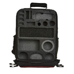 Per coloro che hanno bisogno del massimo comfort di trasporto: Il nostro zaino appositamente progettato per la Panasonic Lumix GH5 non lascia nulla a desiderare. Oltre agli scomparti extra nell'inserto in schiuma, lo zaino offre ulteriori opzioni di stoccaggio. Lo zaino è inoltre dotato di schiuma nel guscio esterno per proteggere dalle influenze esterne. La fornitura comprende anche una mantella da pioggia semplice. Come per la valigia, lo zaino della GH5 è altamente personalizzabile, ad esempio con una schiuma a raster parziale, così come una vestibilità perfetta. Oltre alla GH5 e ai suoi accessori originali come il caricabatterie, le batterie 4x +1 batteria nella fotocamera e i cavi, nello zaino c'è spazio per tre obiettivi di diverse dimensioni. Il grande scomparto multifunzionale con coperchio offre spazio per riporre tutte le altre attrezzature che non entrano negli scomparti. Il coperchio impedisce che anche gli oggetti più piccoli vengano gettati nello zaino. La fornitura comprende anche 3x raster foam per il design individuale, un anello adattatore per lo scomparto delle lenti e un coperchio. Troverete i seguenti scomparti: 1x scomparto Panasonic Lumix GH5 compresa la batteria. 4 scomparti per 4 batterie. Scomparto 3x per lenti di diverse dimensioni: Scomparto 1: dimensione massima della lente 90mm x 70mm. Scomparto 2: dimensione massima della lente 110mm x 80mm. Scomparto 3: dimensione massima dell'obiettivo 130mm x 95mm o con base adattatore 90mm x 75mm. 1x scomparto per la piastra dell'adattatore dell'obiettivo 100mm x 40mm. 3x scomparto per piccoli cavi (cavo di ricarica, USB, cavo 5V ecc.). 2 scomparti per il caricabatterie originale della GH5. così come un altro scomparto, che può essere utilizzato in modo multifunzionale. Realizzato con ❤ a Monaco, Germania - Dimensioni del bagaglio a mano: 464 x 366 x H 176 mm - Peso circa 500 grammi.