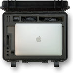 Durante lo sviluppo, abbiamo fatto in modo che il MacBook Pro e gli altri accessori siano riposti in modo ideale e allo stesso tempo possano essere comodamente rimossi a portata di mano. Una caratteristica speciale della nostra nuova custodia è che il MacBook può rimanere nella custodia durante il lavoro e può quindi essere utilizzato anche in ambienti difficili e impegnativi. Tra le altre cose, le prese d'aria sono state progettate per proteggere dal surriscaldamento. Tutti i cavi possono essere collegati mentre il MacBook rimane nella custodia.